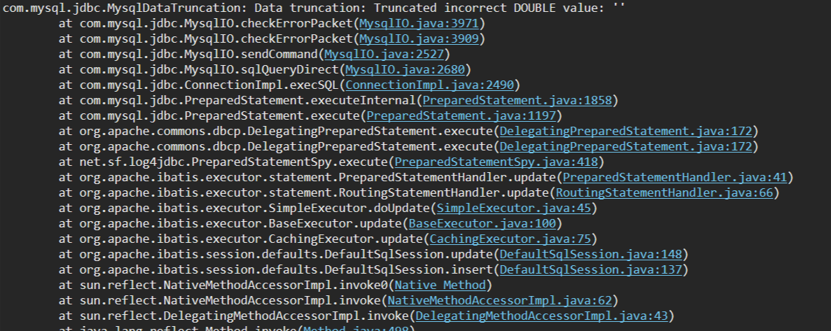 MysqlDataTruncation : Data truncation : Truncated incorrect DOUBLE value : ' '